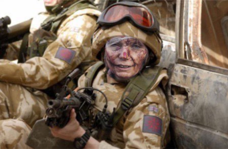 今度は、軍服を着て機関銃を構えている。